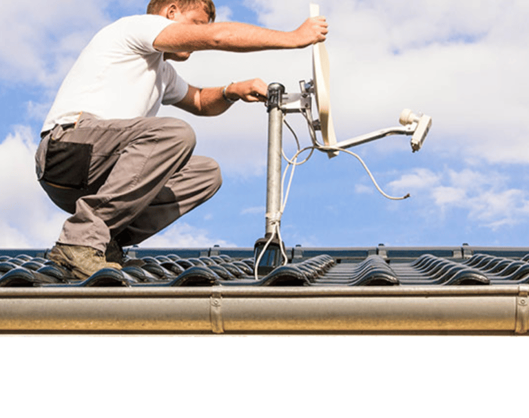Oferecemos serviços de instalação de antenas parabólicas, suportes de TV e configuração de receptores de TV.